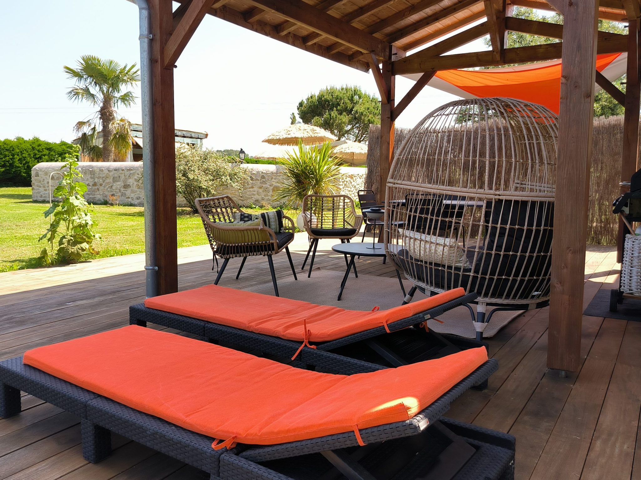 Sur demande, une plancha gaz ou un barbecue charbon permet de se réunir autour de délicieuses grillades. Depuis la terrasse, l’accès piscine est proche (20mètres).